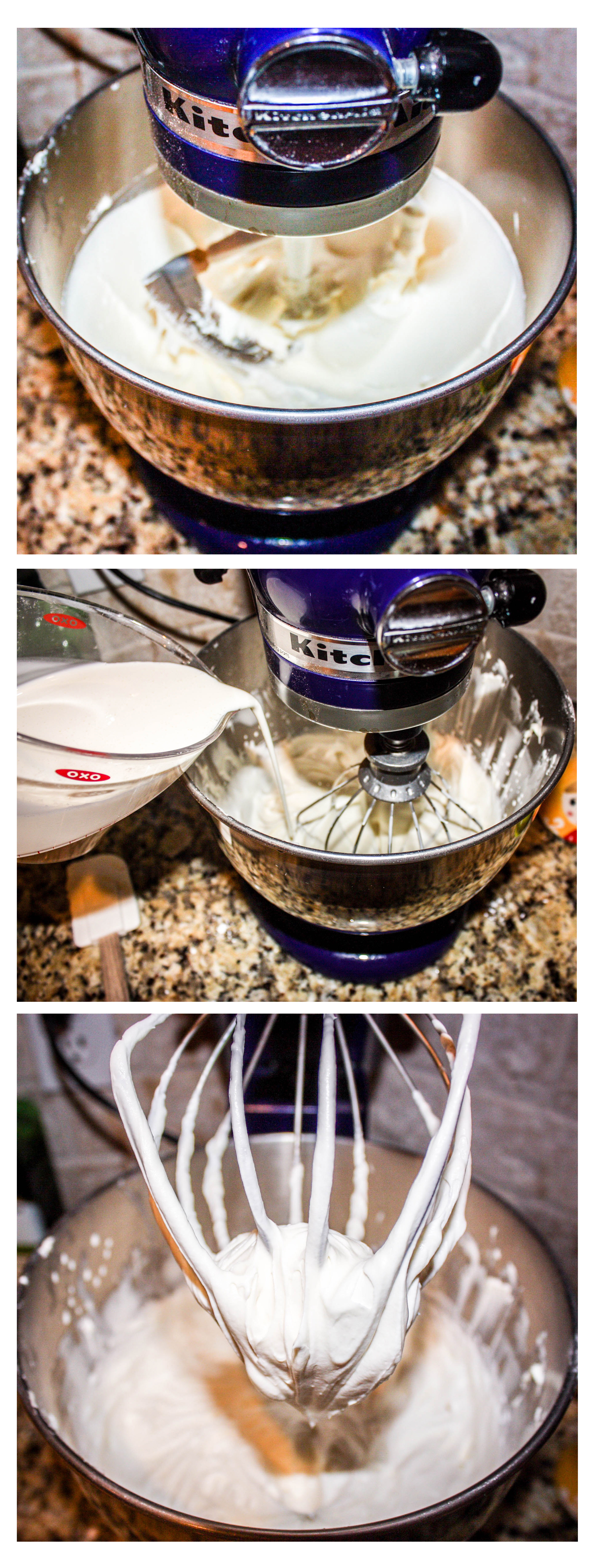 2. Remove the paddle attachment and attach the whisk. Scrape down any cream cheese from the sides of the bowl.